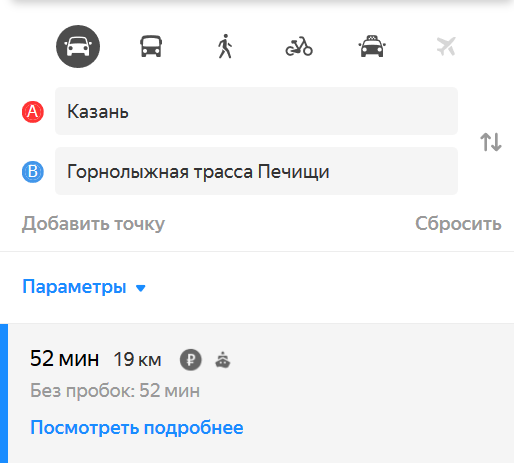 Небольшой горнолыжный курорт "Печищи", находящийся в двадцати километрах от Казани. Здесь тренировалась сборная Татарстана по горным лыжам. На курорте, расположенном на правобережье Волги, находятся не самые простые для новичков трассы, которые доступны в светлое время суток.